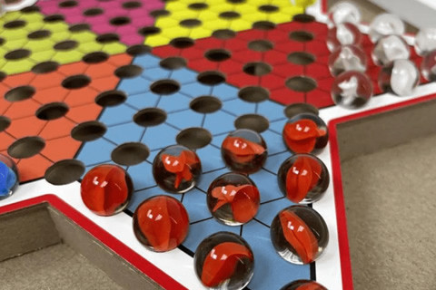 棋盤為六角星,棋子分為六種顏色,每位玩家擁有一種顏色的棋子並擺滿一個角,以最先將己方棋子全部移動至對角為優勝。