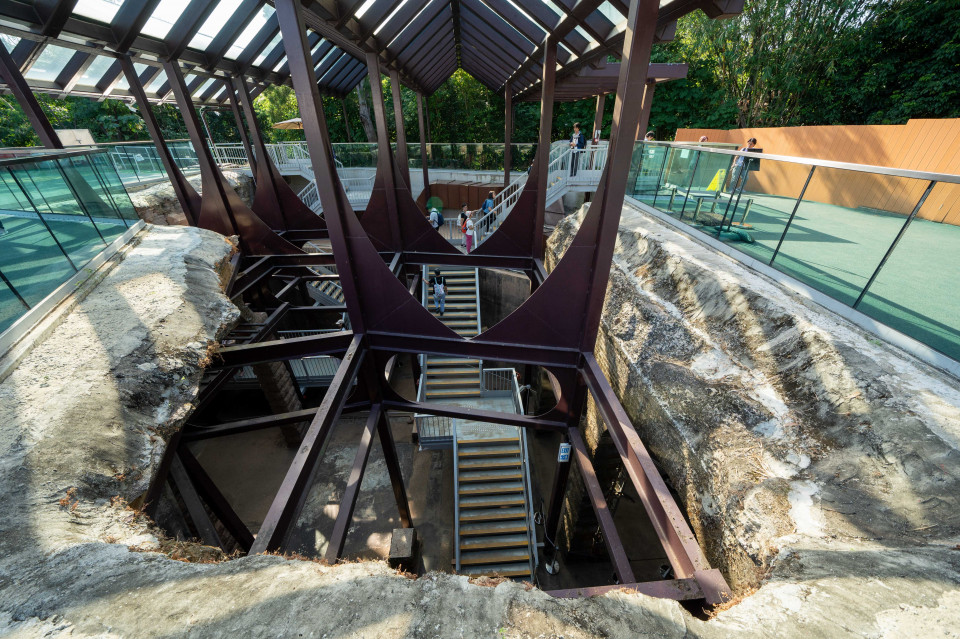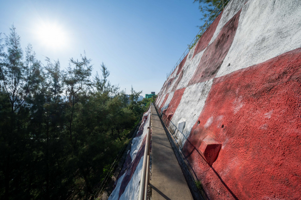 深水埗主教山配水庫是香港首個圓形地下配水庫,內裏四處分佈了108條花崗石柱,配以紅磚砌成的半圓拱券以及混凝土拱形天花,加上成為一級歷史建築後設置的燈光效果,令人彷如置身於古羅馬建築,無論哪一個角度「打卡」,都好像坐了時光機回到過去一樣