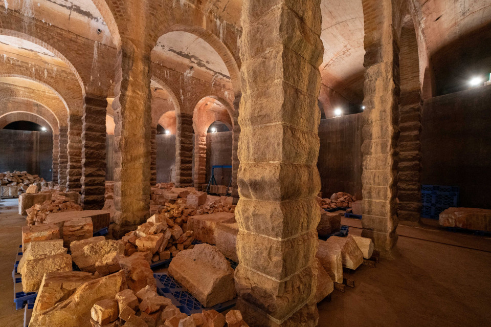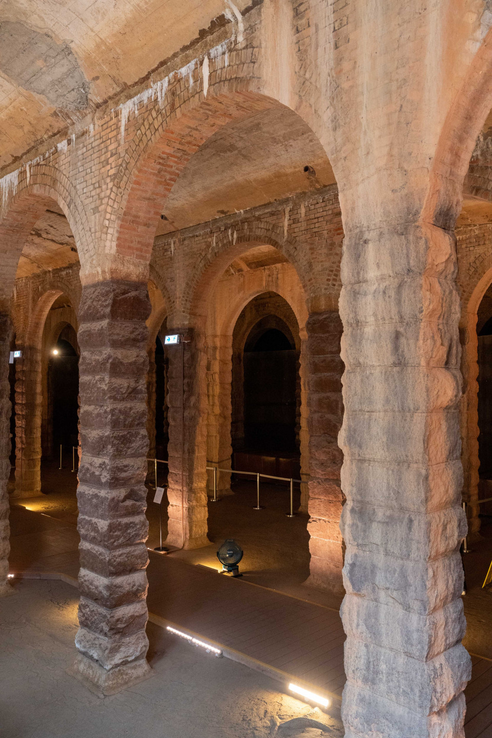 天花由多排紅磚拱券和石柱支撐,充滿古羅馬建築特色。