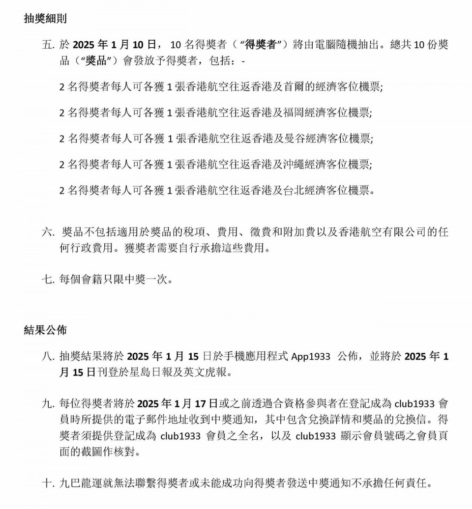 2024年12月26日或之前登記成為九巴club1933會員
